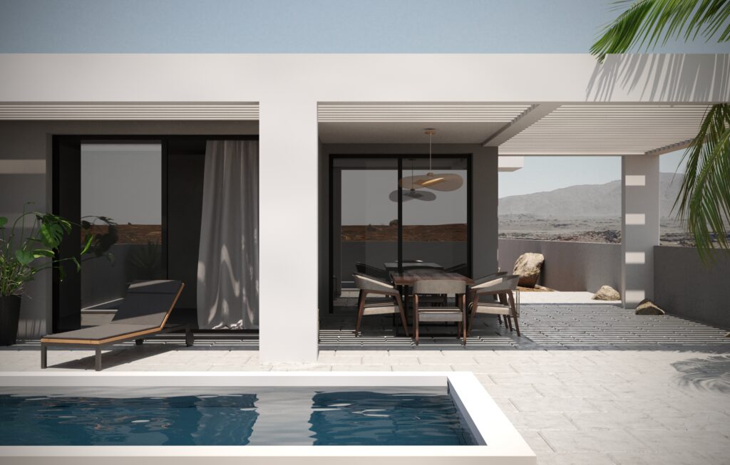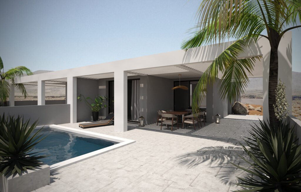 Oferujemy na sprzedaż połowę bliźniaka z prywatnym basenem w miejscowości Caleta de Fustena położonego w sercu prestiżowego osiedla, Campo de Golf de Las Salinas, w którym większość stanowią nowe, nowoczesne domy.